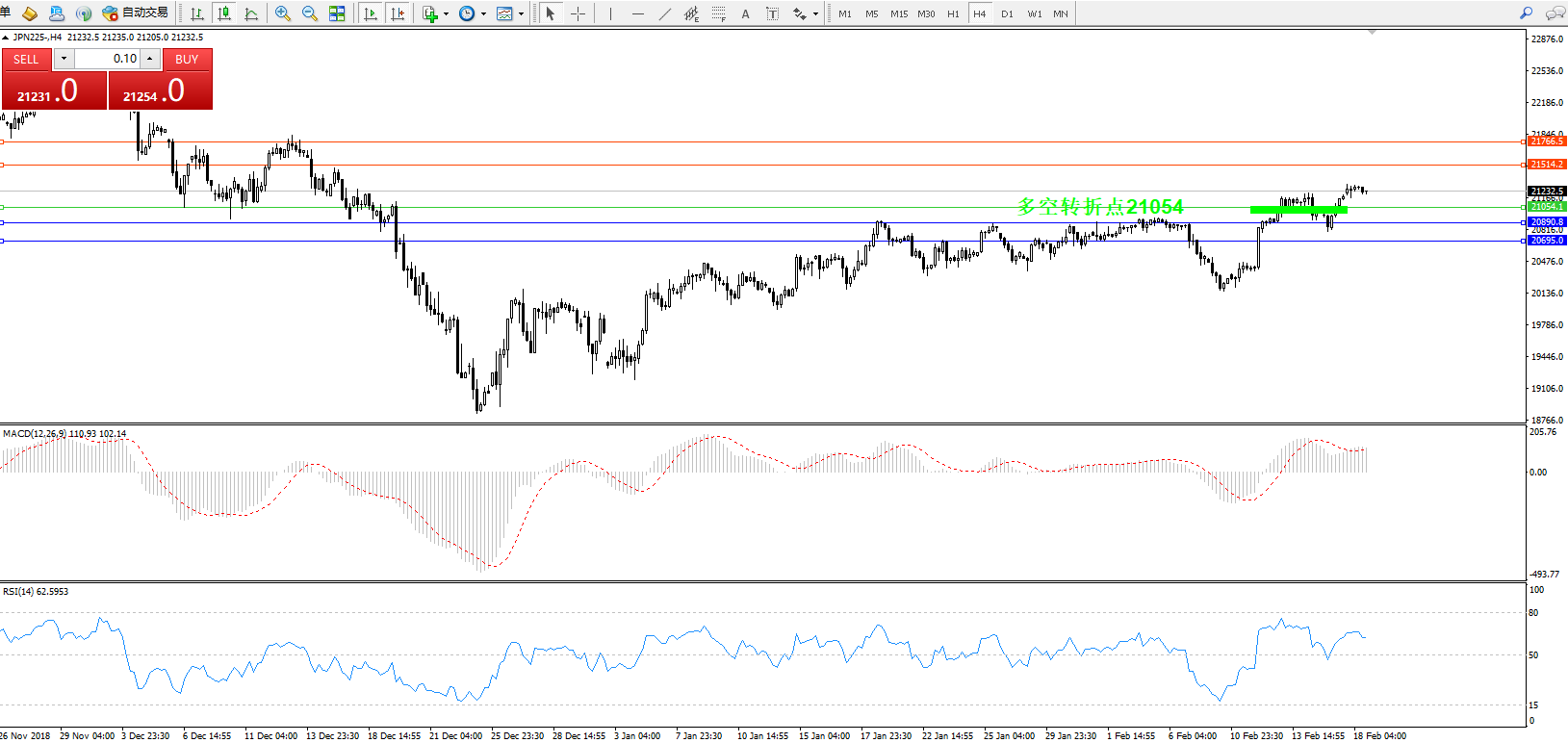日本股市在星期一收高,其中化工、石油和塑料、橡胶和矿业等上涨的板块带领股指走高。日经225指数涨1.82%,创近一月新高。对于中美将解决贸易紧张关系的预期愈发高涨,提振了投资人冒险意愿。政治风险仍在,在华盛顿每一件事情的演变都必须小心衡量。美国总统特朗普上周五宣布进入国家紧急状态,以便在没有国会批准的情况下为修筑美墨边境墙争取资金。