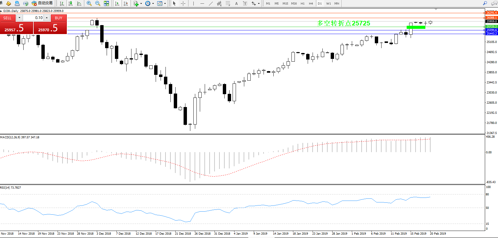 道琼斯指数DJ30—— 日K线图显示: