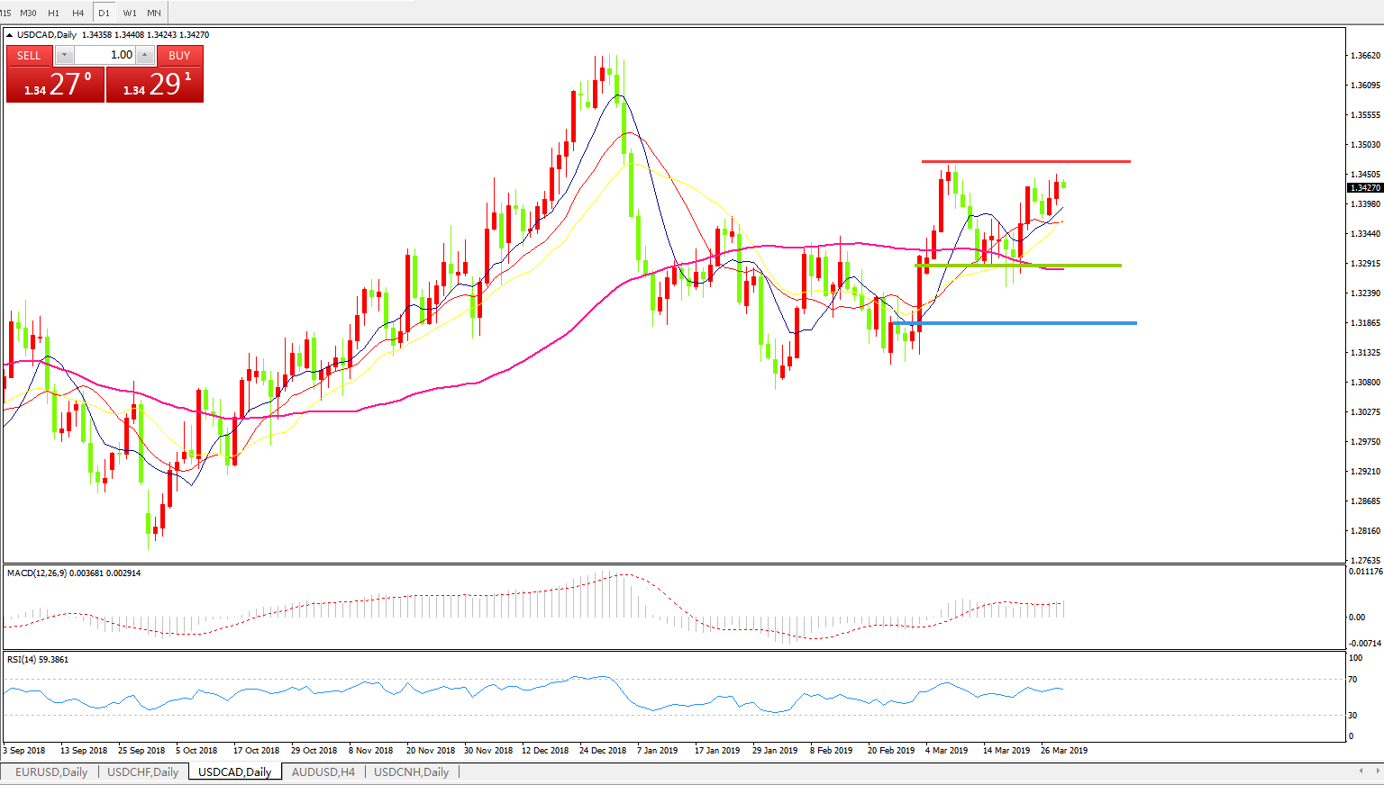 美元兑加元USDCAD    日线