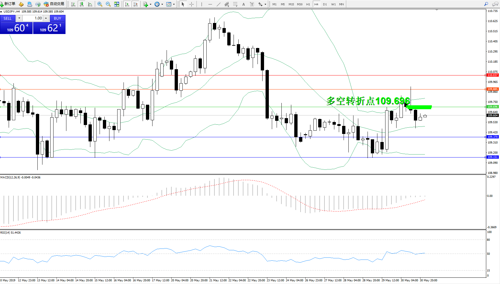 交易策略:109.696下方看跌,目标109.370109.151