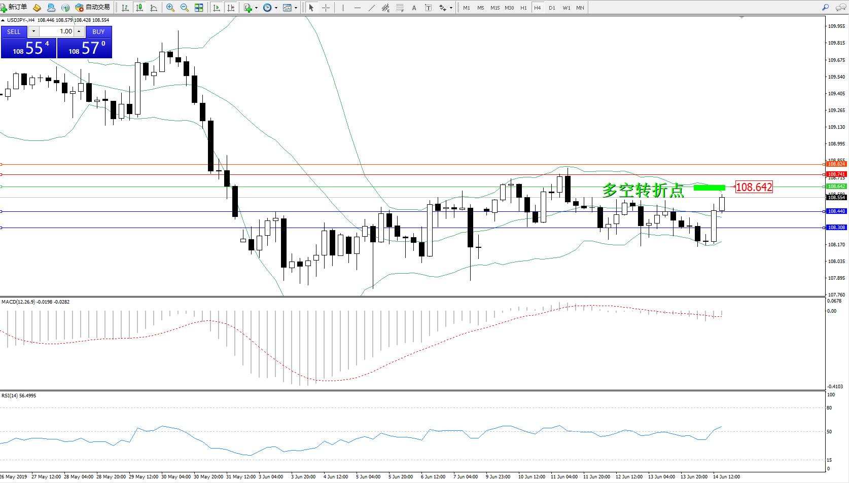 交易策略:108.642下方看跌,目标108.440、108.308