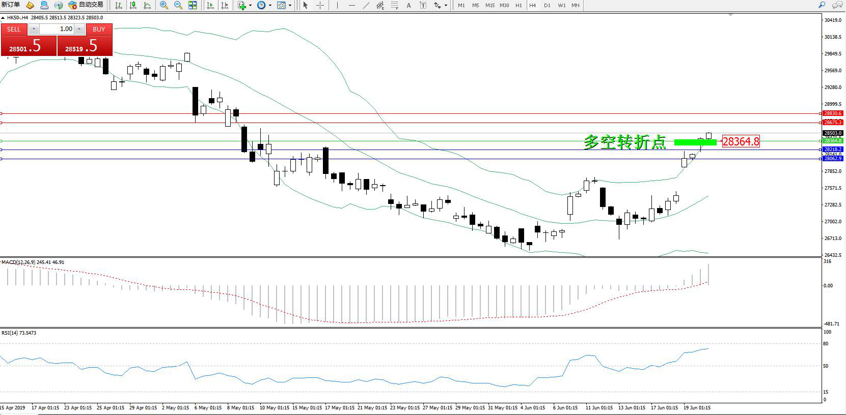 香港恒生指数6月20日(周四)收盘上涨348.29点,涨幅1.23%,报28550.43点;现在是港股走到了比较好的时点,影响港股中长期走势的两个因素开始向好,均处在对港股从不利到有利的拐点上:一是中国经济到了从下行到企稳的拐点;二是美联储货币政策也处于从收紧到偏宽松的拐点位置。虽然港股市场中长期来看支撑因素强劲且估值偏低,具有上行空间,但短期来看依然处于震荡整固期,在外围重要事件落地前,还应保持适宜谨慎态。