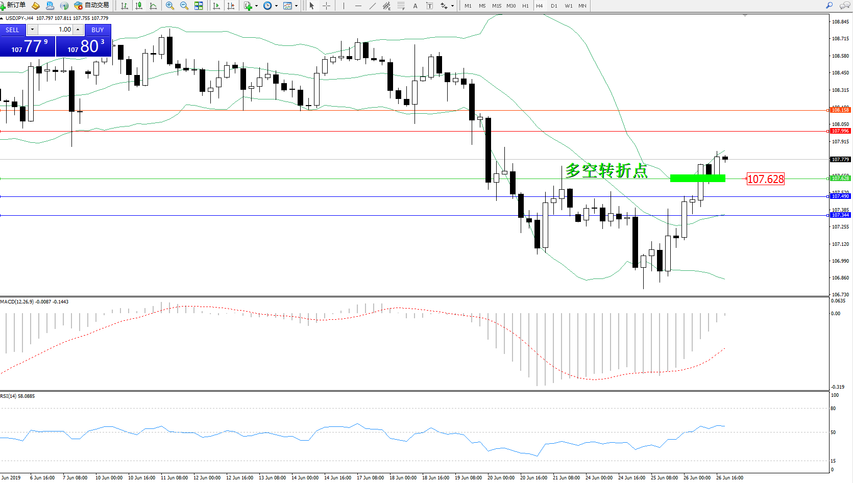 技术点评:低位弱势震荡后或的支撑,多头伺机进入,持续拉升突破中轨并延续上轨持续上移中,多头上行暂未有减弱迹象,MACD指标空头区域弱势上移中,RSI指标突破50均衡线进入多头区域弱势徘徊;