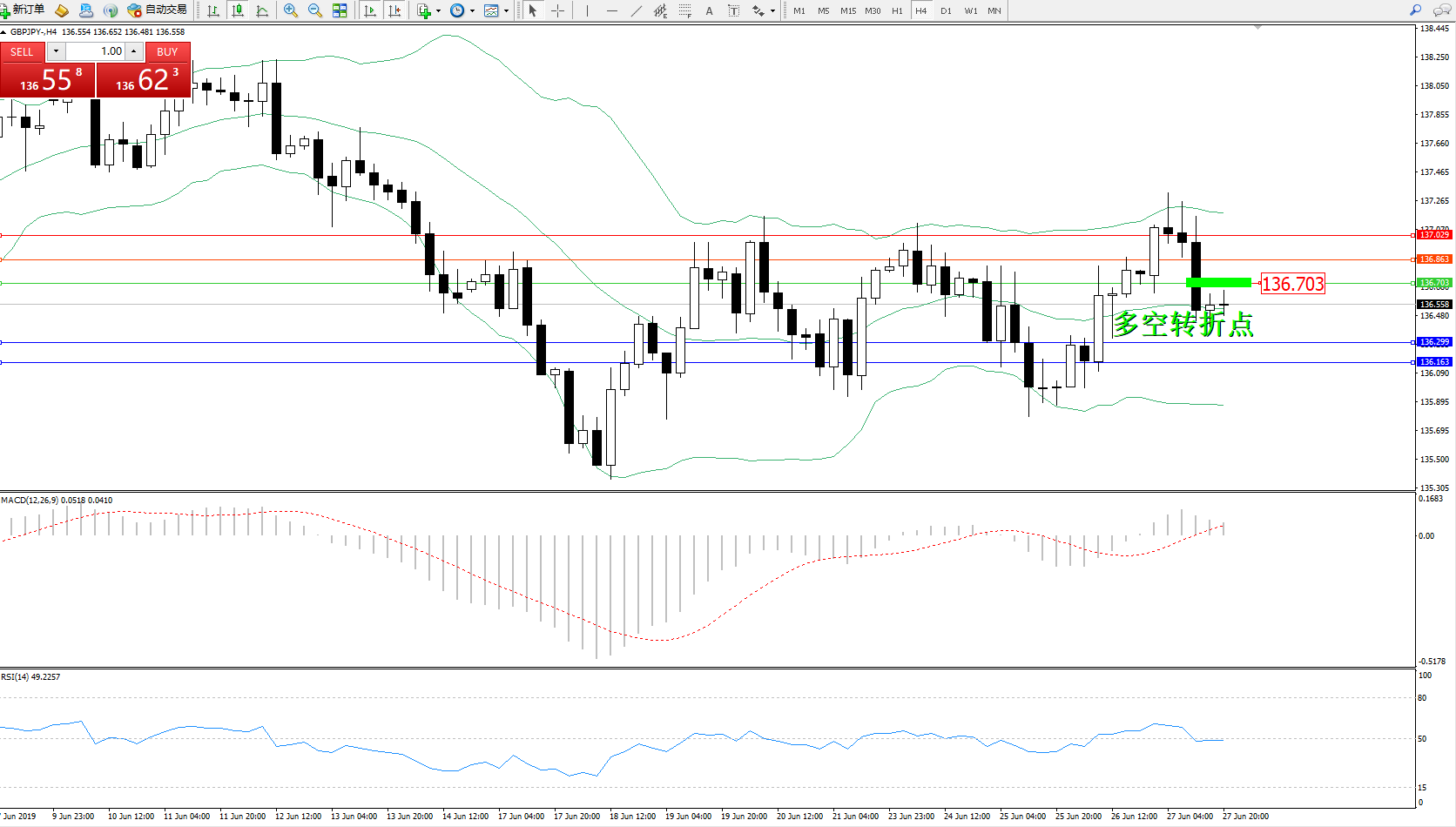 技术点评:维持宽幅震荡延续布林带内侧走势缓慢上行中,触及布林带谁后缓慢向中轨附近下移,多头动力短期减弱,MACD指标多头区域缓慢回撤至0轴上方附近,RSI指标维持50均衡线弱势徘徊;