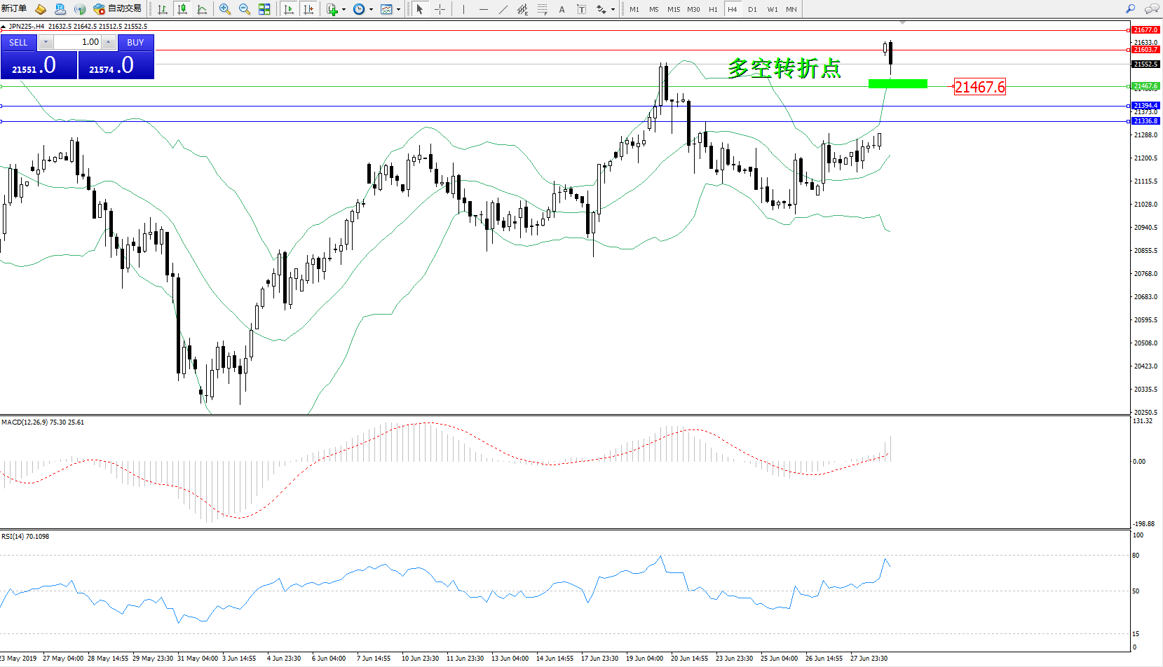 日经225指数628日(周五)收盘下跌108.67点,跌幅0.51%,报21229.50点。日本首相安倍晋三:G20同意引领全球经济增长,如有必要将采取进一步行动,明确确认了自由、公平、非歧视贸易的必要性,世界经济因贸易和其他问题面临的下行风险仍然存在,G20可以在气候变化问题上寻求共识。