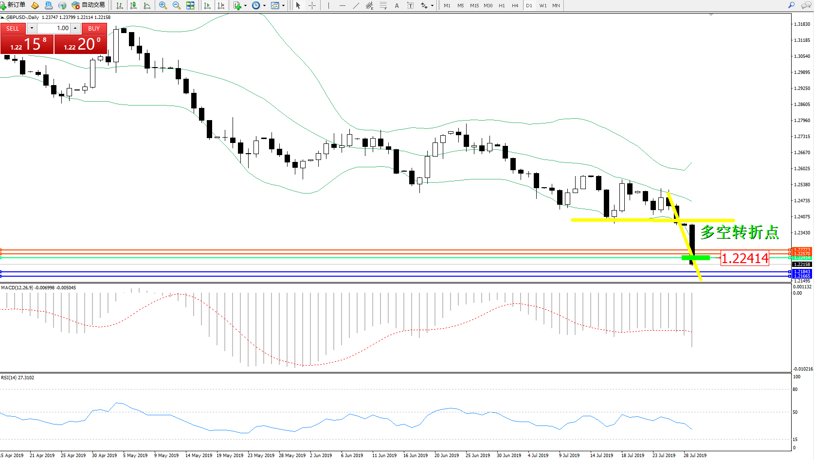 交易策略:1.22414下方看跌,目标1.21843、1.21665