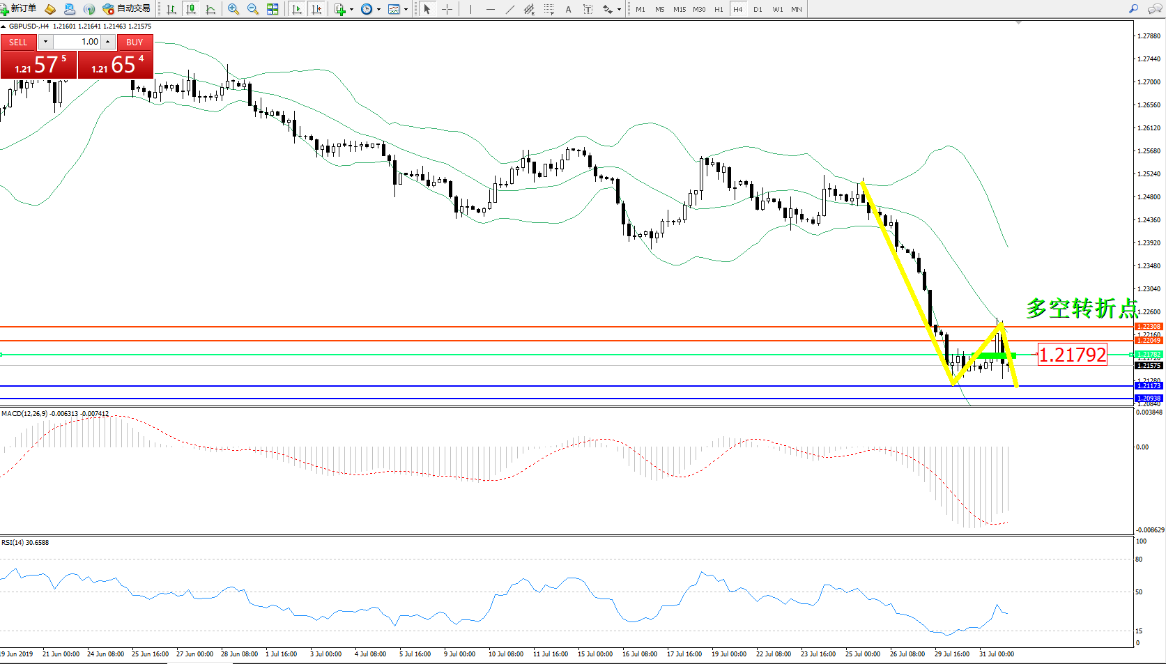 交易策略:1.21792下方看跌,目标1.21173、1.20938