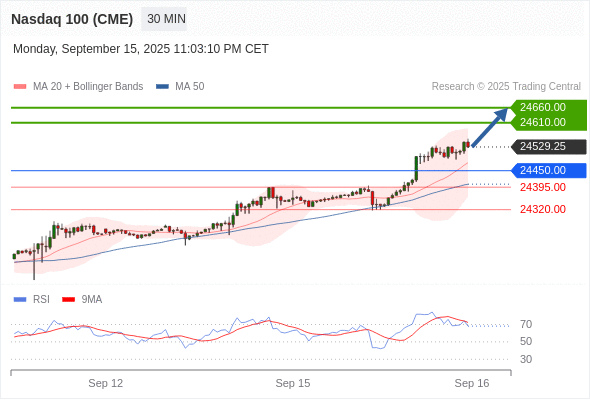 在 24450.00 之上,看涨,目标价位为 24610.00 ,然后为 24660.00 。