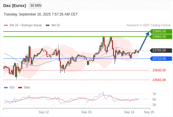 交易策略: 在 23710.00 之上,看涨,目标价位为 23860.00 ,然后为 23895.00 。