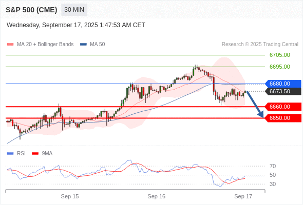 交易策略: 在 6680.00 之下,看跌,目标价位为 6660.00 ,然后为 6650.00 。