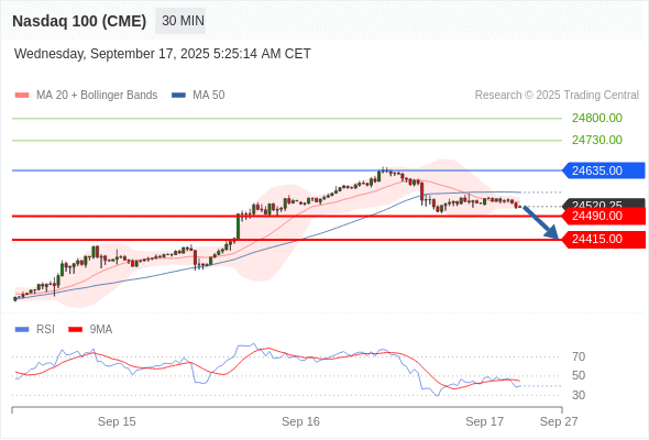 在 24635.00 之下,看跌,目标价位为 24490.00 ,然后为 24415.00 。
