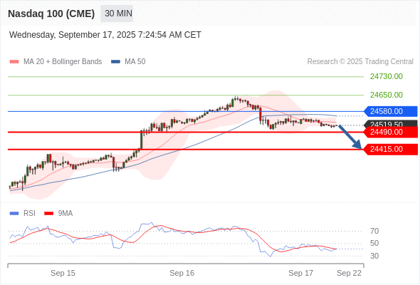 在 24580.00 之下,看跌,目标价位为 24490.00 ,然后为 24415.00 。