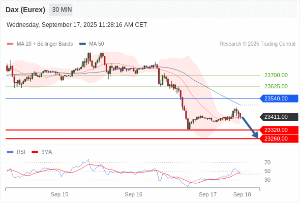 在 23540.00 之下,看跌,目标价位为 23320.00 ,然后为 23260.00 。