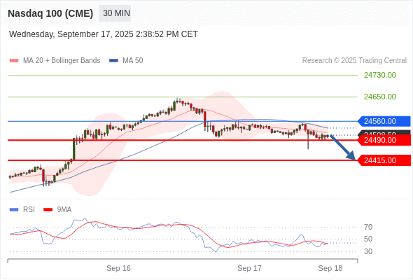 在 24560.00 之下,看跌,目标价位为 24490.00 ,然后为 24415.00 。