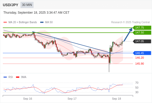 在 146.45 之上,看涨,目标价位为 147.50 ,然后为 147.75 。