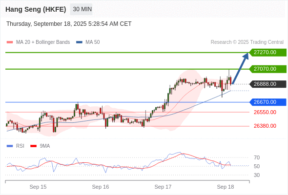 在 26670.00 之上,看涨,目标价位为 27070.00 ,然后为 27270.00 。