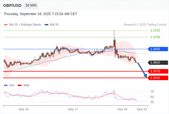 在 1.3655 之下,看跌,目标价位为 1.3570 ,然后为 1.3545 。
