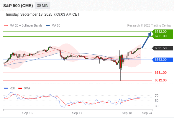 美国标普500指数期货 (Z5) 当日内: 目标位为6721.00。
