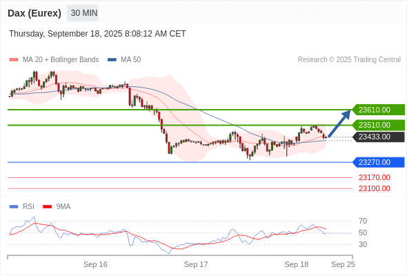 交易策略: 在 23270.00 之上,看涨,目标价位为 23510.00 ,然后为 23610.00 。