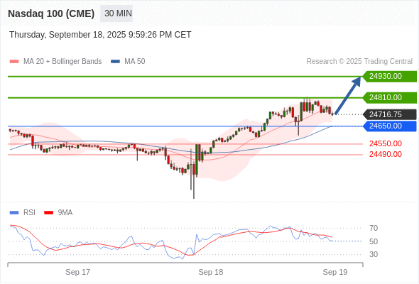 在 24650.00 之上,看涨,目标价位为 24810.00 ,然后为 24930.00 。