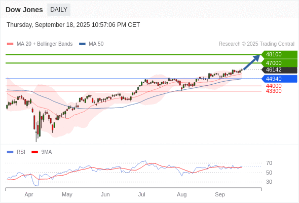 在 44940 之上,看涨,目标价位为 47000 ,然后为 48100 。