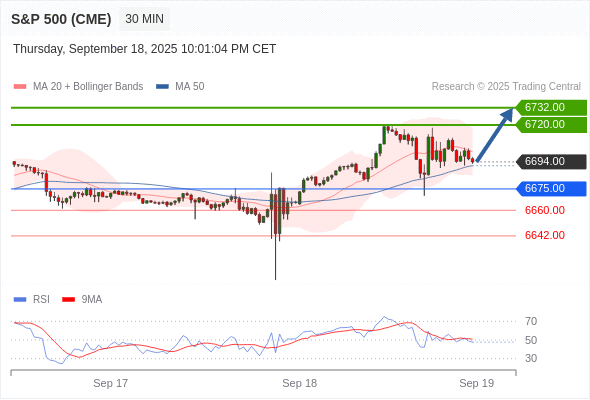交易策略: 在 6675.00 之上,看涨,目标价位为 6720.00 ,然后为 6732.00 。