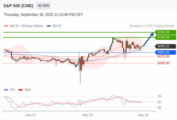交易策略: 在 6685.00 之上,看涨,目标价位为 6720.00 ,然后为 6732.00 。