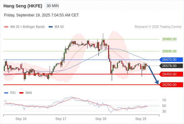 在 26670.00 之下,看跌,目标价位为 26450.00 ,然后为 26290.00 。