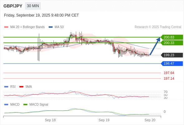 英镑/日元 当日内: 有上涨的可能,目标价位定在 200.83 。