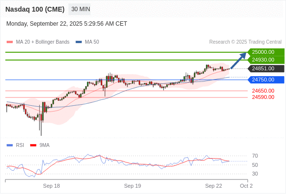 交易策略: 在 24750.00 之上,看涨,目标价位为 24930.00 ,然后为 25000.00 。