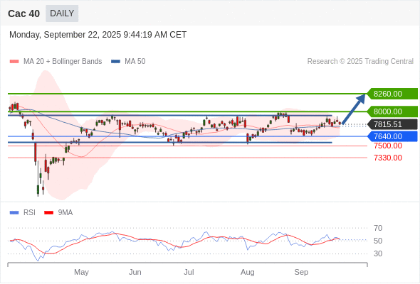 Cac 40 短线: 期待8000.00。