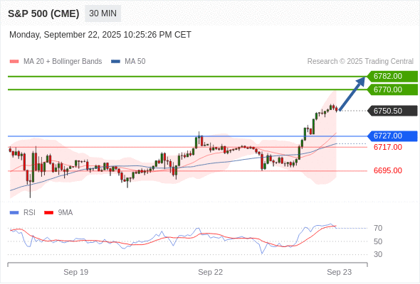 在 6727.00 之上,看涨,目标价位为 6770.00 ,然后为 6782.00 。
