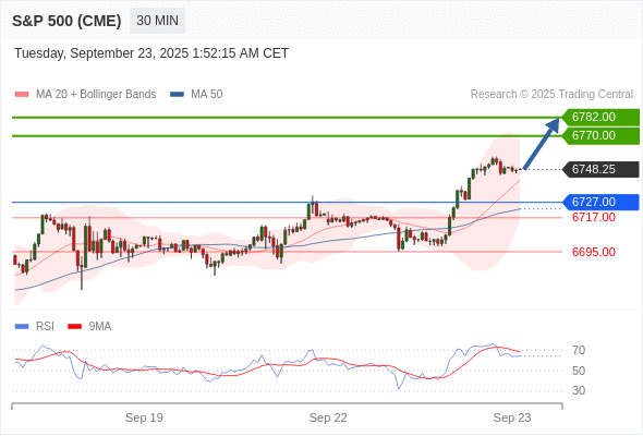 交易策略: 在 6727.00 之上,看涨,目标价位为 6770.00 ,然后为 6782.00 。
