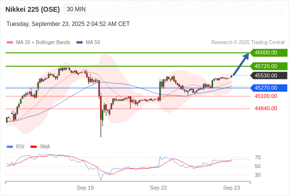 在 45270.00 之上,看涨,目标价位为 45720.00 ,然后为 46000.00 。