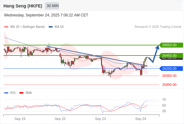 在 26200.00 之上,看涨,目标价位为 26450.00 ,然后为 26650.00 。