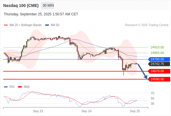 在 24790.00 之下,看跌,目标价位为 24670.00 ,然后为 24590.00 。