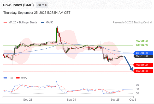 在 46570.00 之下,看跌,目标价位为 46360.00 ,然后为 46250.00 。