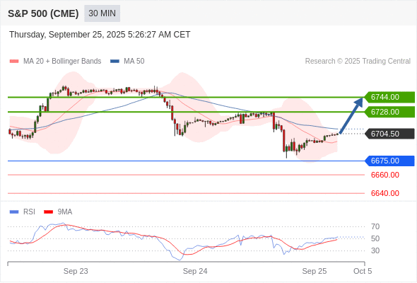 交易策略: 在 6675.00 之上,看涨,目标价位为 6728.00 ,然后为 6744.00 。