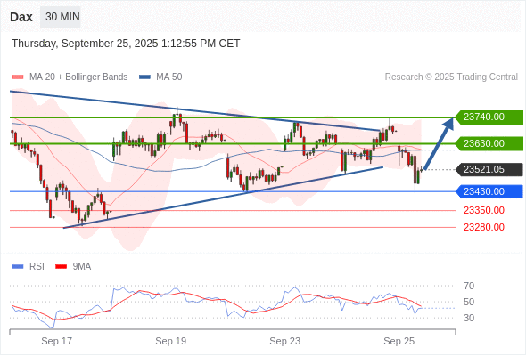 交易策略: 在 23430.00 之上,看涨,目标价位为 23630.00 ,然后为 23740.00 。