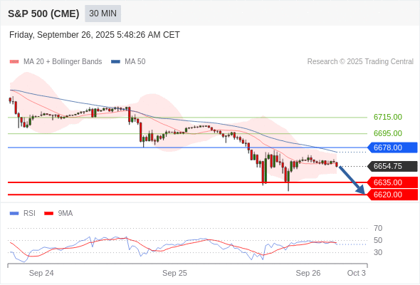 美国标普500指数期货 (Z5) 当日内: 短期关键阻力位在6678.00。
