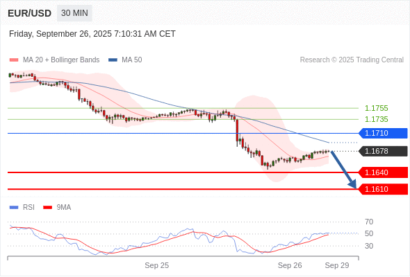 交易策略: 在 1.1710 之下,看跌,目标价位为 1.1640 ,然后为 1.1610 。
