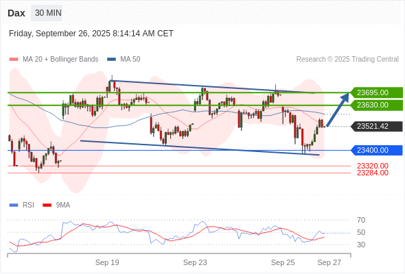 交易策略: 在 23400.00 之上,看涨,目标价位为 23630.00 ,然后为 23695.00 。