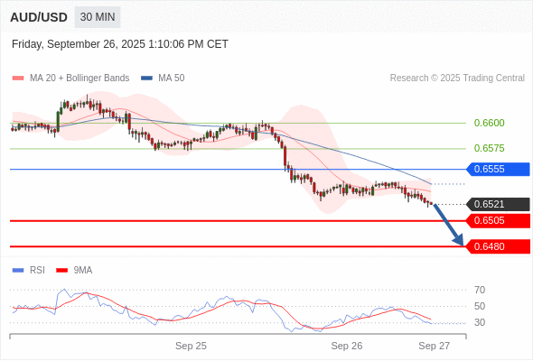 交易策略: 在 0.6555 之下,看跌,目标价位为 0.6505 ,然后为 0.6480 。