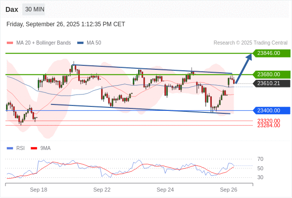 在 23400.00 之上,看涨,目标价位为 23680.00 ,然后为 23846.00 。
