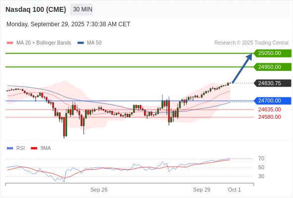在 24700.00 之上,看涨,目标价位为 24950.00 ,然后为 25050.00 。