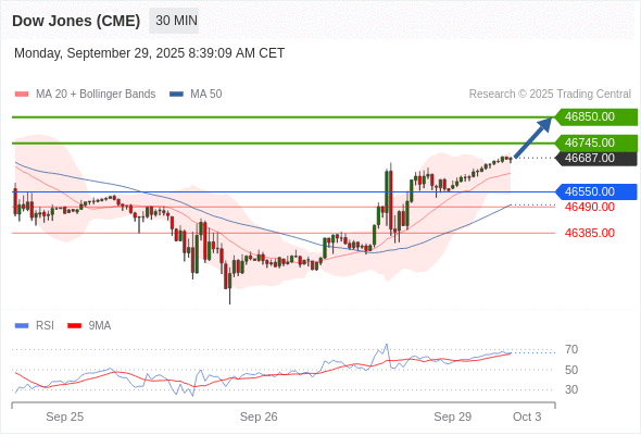 在 46550.00 之上,看涨,目标价位为 46745.00 ,然后为 46850.00 。