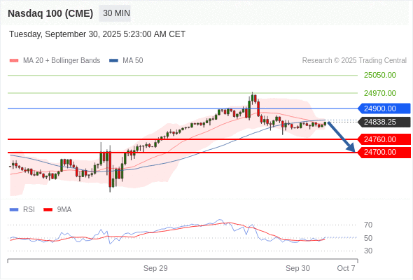 在 24900.00 之下,看跌,目标价位为 24760.00 ,然后为 24700.00 。