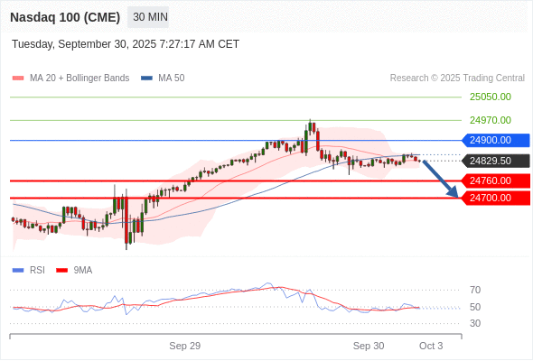 在 24900.00 之下,看跌,目标价位为 24760.00 ,然后为 24700.00 。