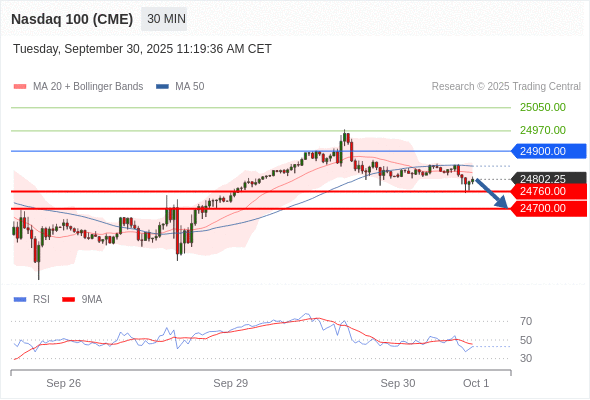 在 24900.00 之下,看跌,目标价位为 24760.00 ,然后为 24700.00 。