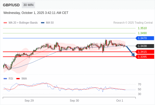 在 1.3470 之下,看跌,目标价位为 1.3415 ,然后为 1.3395 。